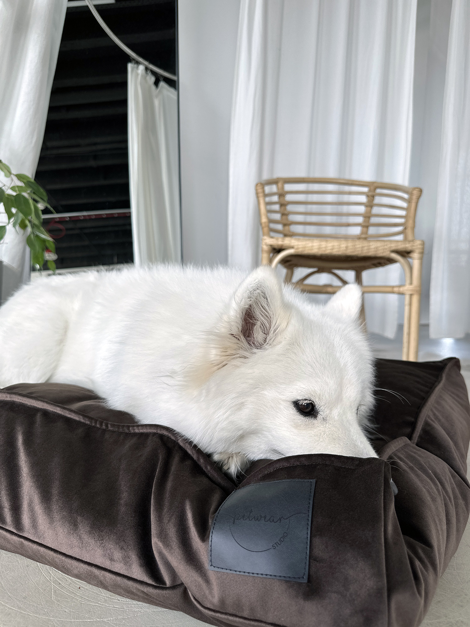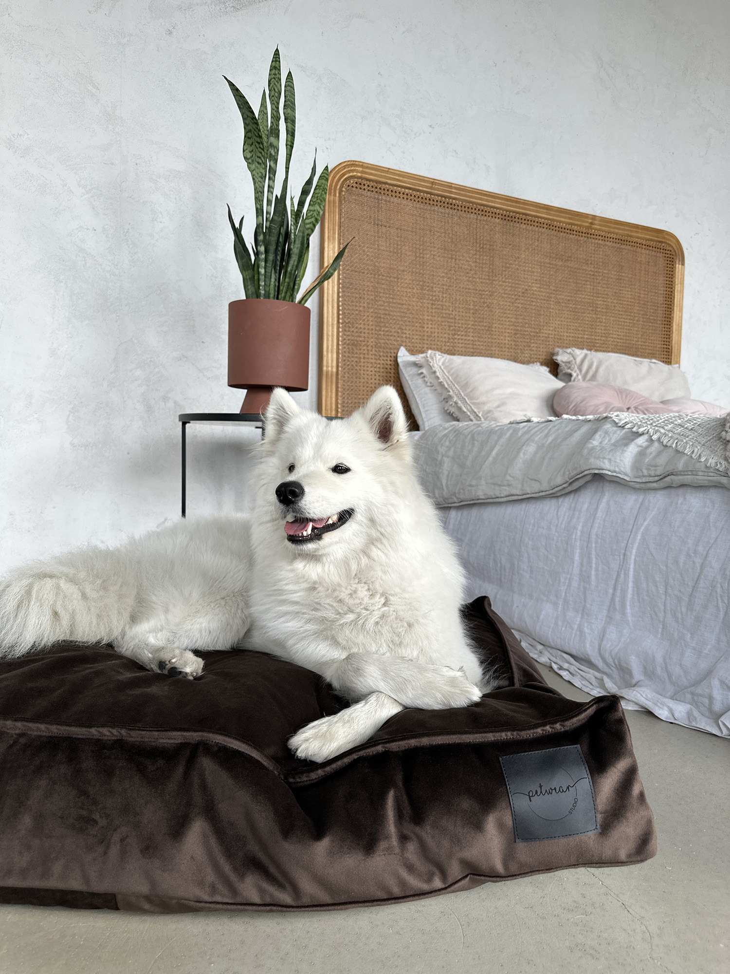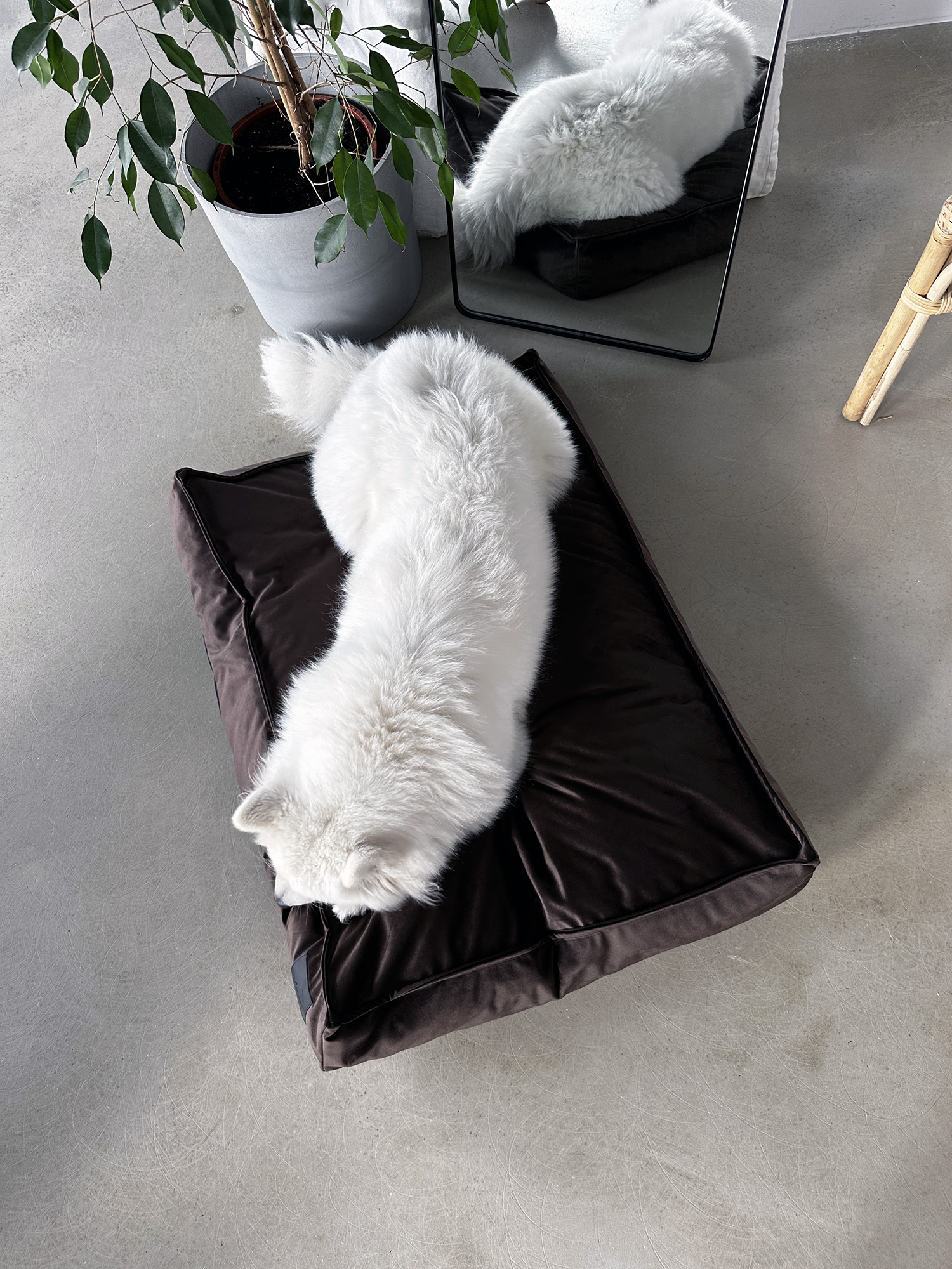 Eleganckie i szykowne legowisko będzie znakomitym miejscem odpoczynku Twojego pupila. Pokrowiec wykonany jest z gładkiego velvetu. Miękkie, przyjemne w dotyku materiały nadadzą wnętrzom przytulnego charakteru, a klasyczny kształt posłania będzie zawsze dobrym uzupełnieniem przestrzeni.
